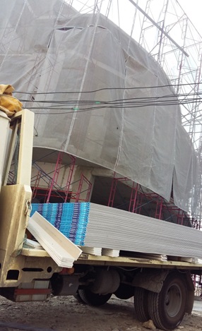 ระบบฝ้าเพดานฉาบเรียบ: SL40 (ยิปรอค) + แผ่นยิปซัม SCL ธรรมดา 9 มิลลิเมตร พื้นที่ 3,000 ตารางเมตร